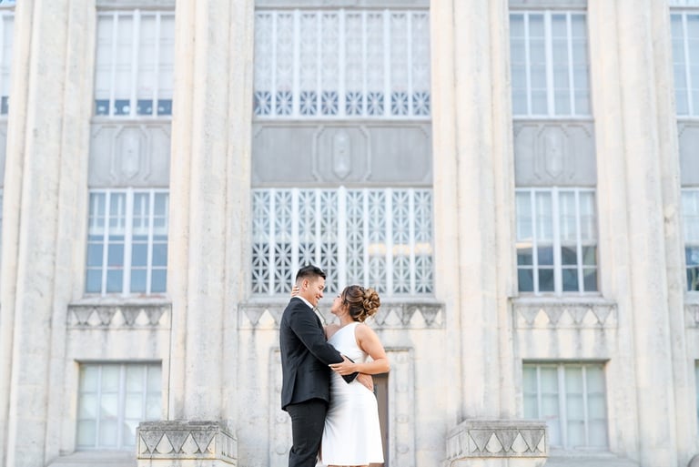 There's a unique kind of magic that happens when you pair a vibrant couple with a striking architectural backdrop, and that's exactly what unfolded during U and G's engagement session at the Heman Marion Sweatt Courthouse in downtown Austin! U and G were drawn to the courthouse's impressive style, and their Pinterest inspiration hinted at the dramatic romance we were about to capture.